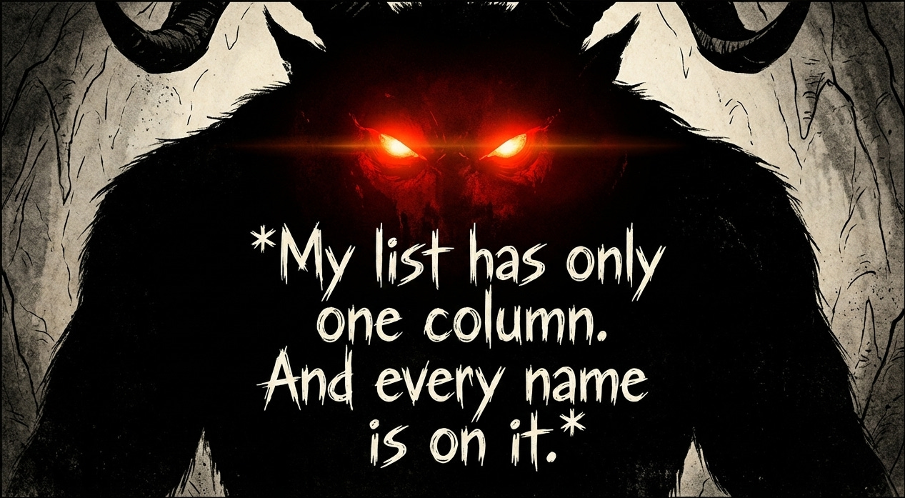 โI have been cultivating these for decades,โ Krampus said, opening the sack. โGrowing them in the deep places. Feeding them on rage and resentment and the accumulated psychic weight of every unpunished sin.โ