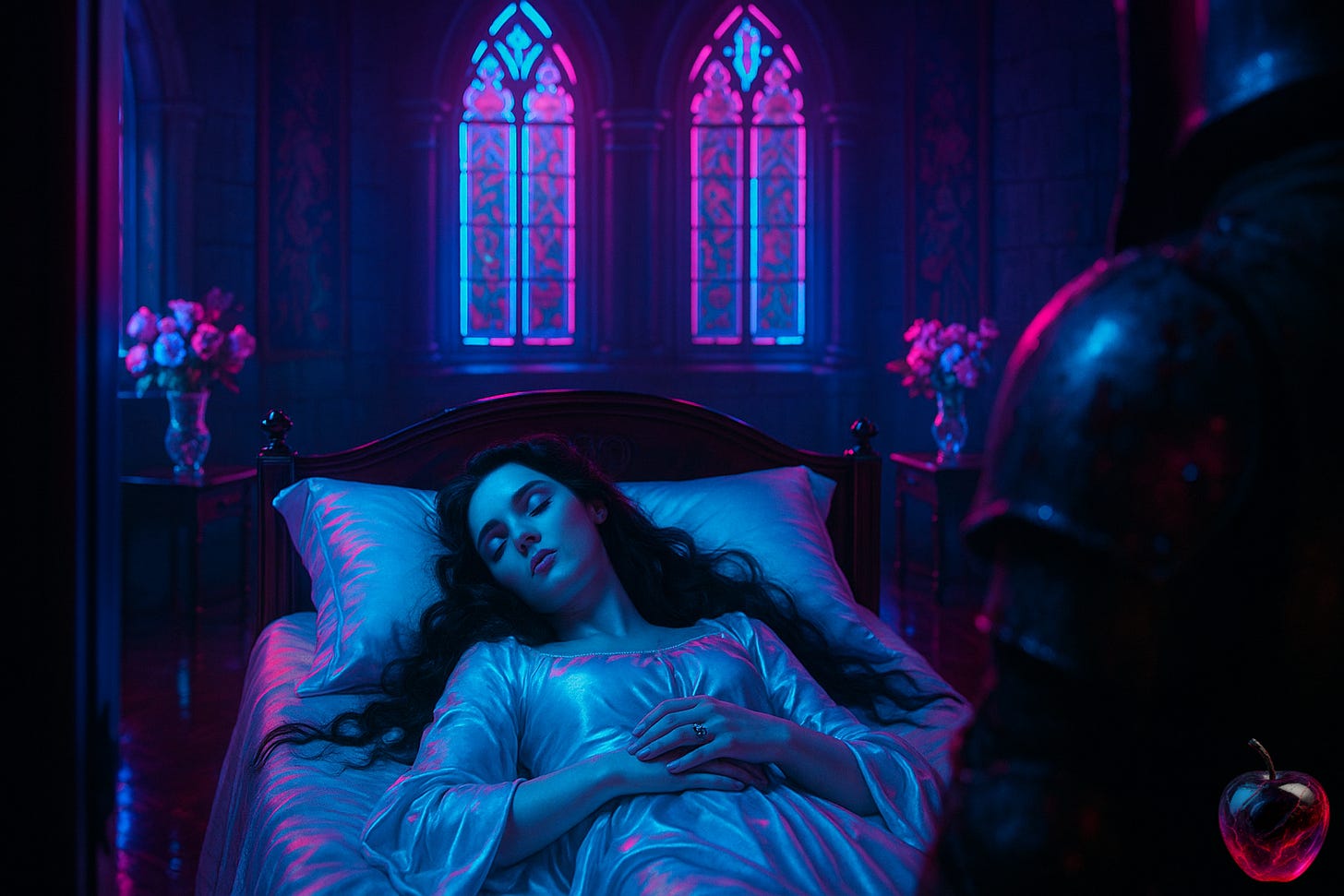 The princess returned to her bed. Arranged herself in the sleeping pose, hands folded, expression serene, every detail perfect. The blood began to fade from her skin, absorbed or dissipated by whatever mechanism allowed her to maintain her disguise, to reset the trap, to wait for the next hero. Within minutes she was pristine again. Perfect again. Sleeping again.